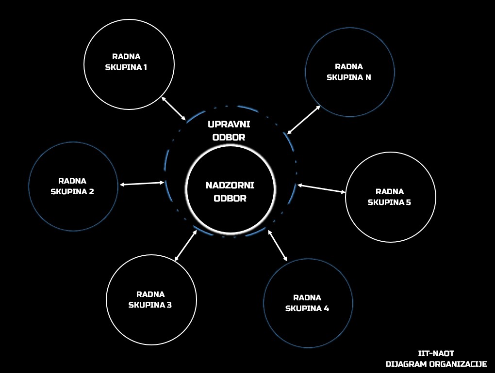 Organizacija i djelovanje Instituta određeni su njegovim Statutom, koji definira temeljna pravila, ovlasti i odgovornosti. Upravni odbor je strateško tijelo Instituta, dok operativne skupine predstavljaju operativnu jezgru. Nadzorni odbor osigurava zakonitost i transparentnost rada, a fleksibilno formiranje radnih skupina omogućuje prilagodbu potrebama i okolnostima. U pozadini ovakvog ustroja nalazi se zamisao o samoorganizirajućem adaptivnom sustavu, koji povezuje stabilnost s otvorenošću za promjene i inovacije.